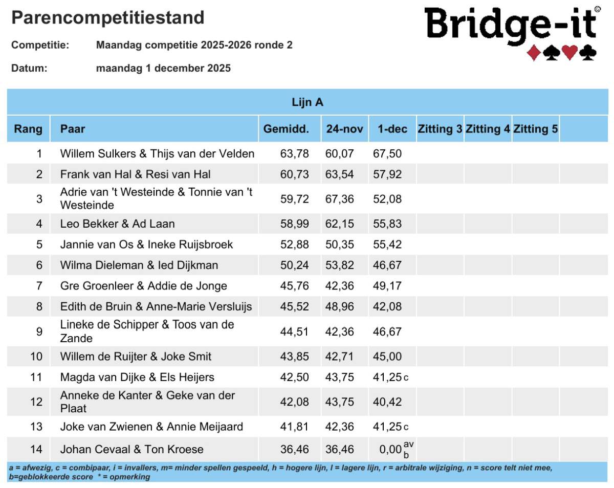 Competitie maandagmiddag Wim Schoenmakers Posted on 25 november 2025 Geplaatst in Competitie maandagmiddag Tagged with competitie Dit delen:FacebookTwitterPinterestPrintE-mail