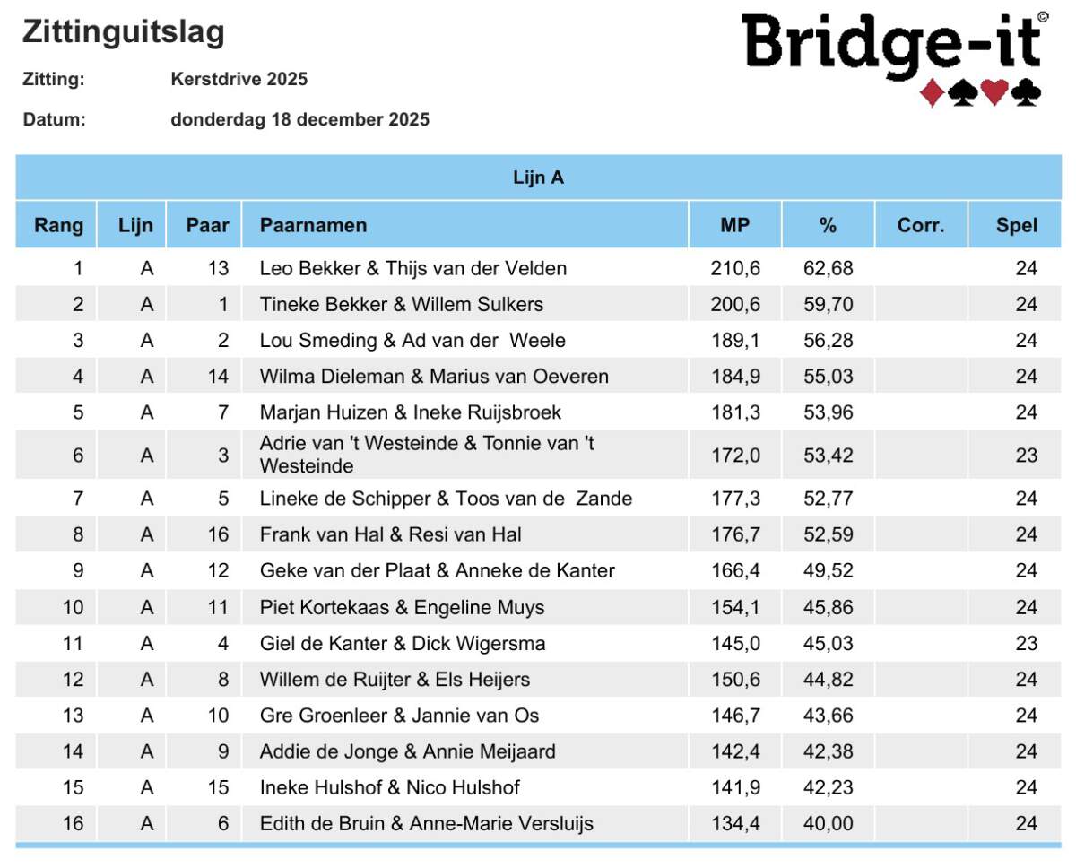 Kerstdrive 2025 uitslag Wim Schoenmakers Posted on 19 december 2025 Geplaatst in Kerstdrive 2025, nieuws, Uitslagen Dit delen:FacebookTwitterPinterestPrintE-mail